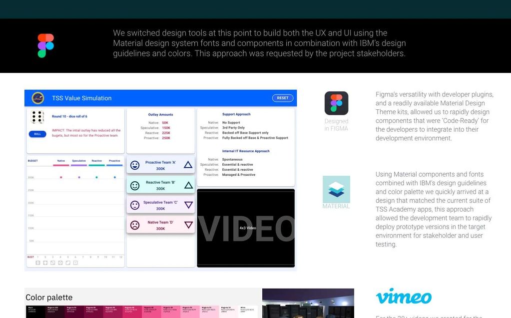 In-person education approaches had to change to virtual sessions once travel restrictions put a halt to business travel around the globe. To continue educating their business partners during the crises, the IBM TSS education team approach us to design a suite of gamified applications they could share online and present via ZOOM sessions. The TSS Value Simulation became quickly one of the most popular apps in the suite, as it was engaging and fun for teams to participate in the simulation.